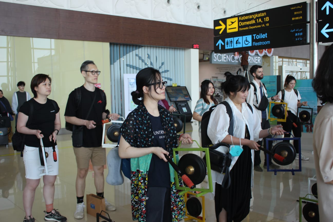 Salah satu momen paling menyentuh datang dari rombongan wisatawan asal Korea Selatan yang baru saja mendarat. Bukannya langsung menuju hotel atau antre bagasi, mereka berhenti, tersenyum, dan tanpa ragu ikut duduk bersama, memegang bendhe, dan memukulnya sesuai arahan. Tidak sedikit dari mereka yang tertawa kecil ketika nadanya meleset, lalu mencoba lagi. Bahkan, beberapa di antara mereka dengan bangga merekam momen tersebut dan mengunggahnya di media sosial.