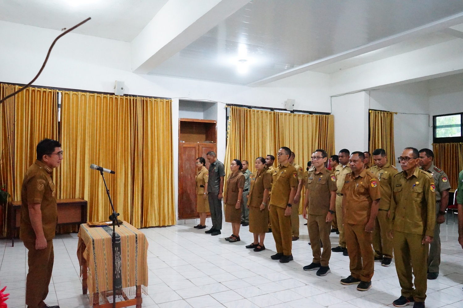 Bupati Belu Willybrodus Lay tekankan kebersihan Kota Atambua dan kontrak kinerja 2026 saat sertijab pejabat Pemkab Belu. Foto: Mc.Atambua