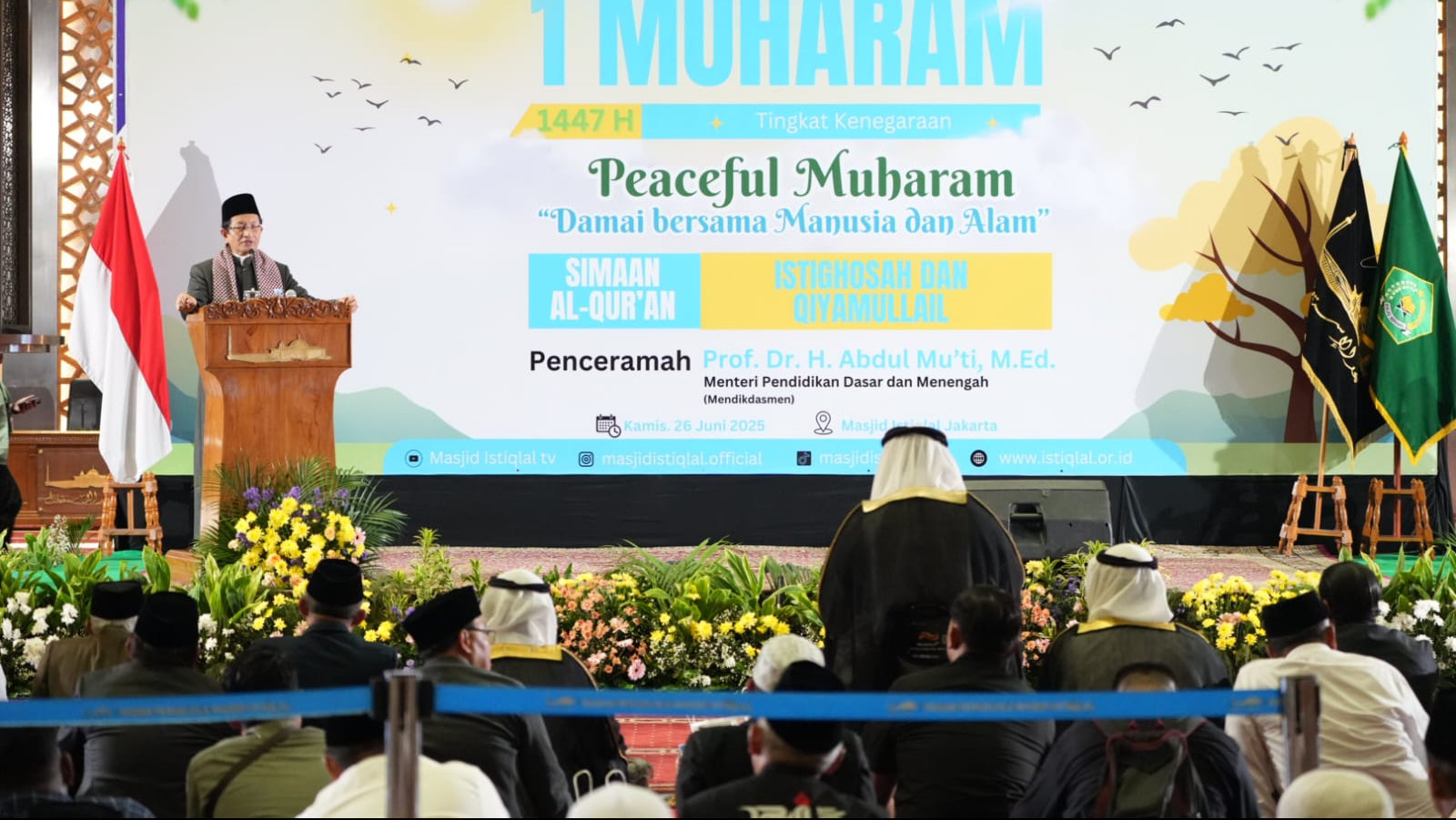 Peringatan 1 Muharam 1447 H ini merupakan bagian dari program “Peaceful Muharam 1447 H” yang diinisiasi Kementerian Agama. Acara ini dihadiri oleh para Menteri dan Wakil Menteri Kabinet Merah Putih, duta besar negara sahabat, tokoh ormas Islam, pejabat Kemenag, serta masyarakat umum.