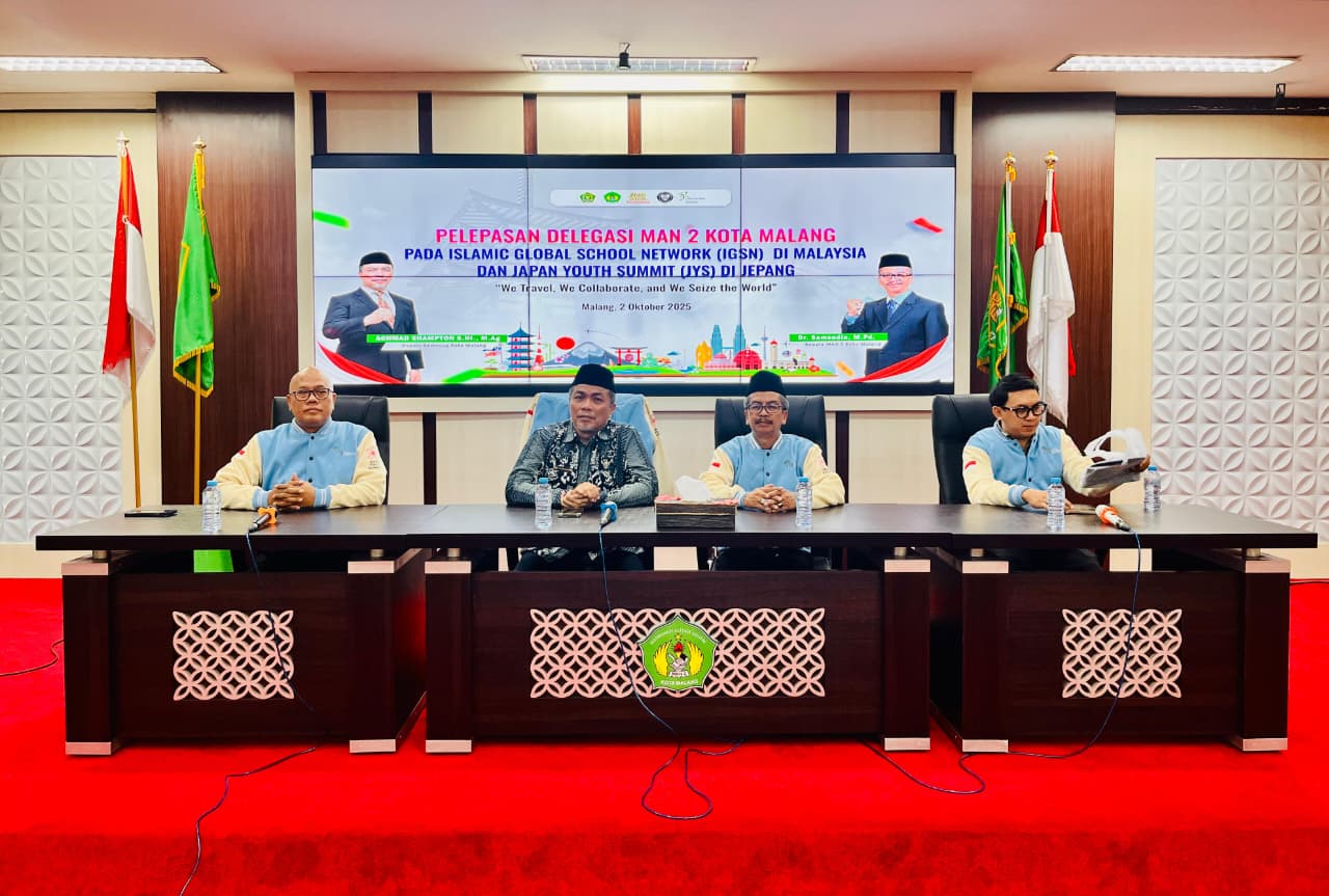 Lokaljawa, Malang – Madrasah Aliyah Negeri (MAN) 2 Kota Malang terus memperluas kiprah global melalui program Madrasah Menjelajah Dunia. Terbaru, sebanyak 70 siswa diberangkatkan untuk mengikuti dua ajang internasional sekaligus, yakni International Islamic Global School Network (IGSN) di Malaysia dan Japan Youth Summit (YJS) di Jepang.