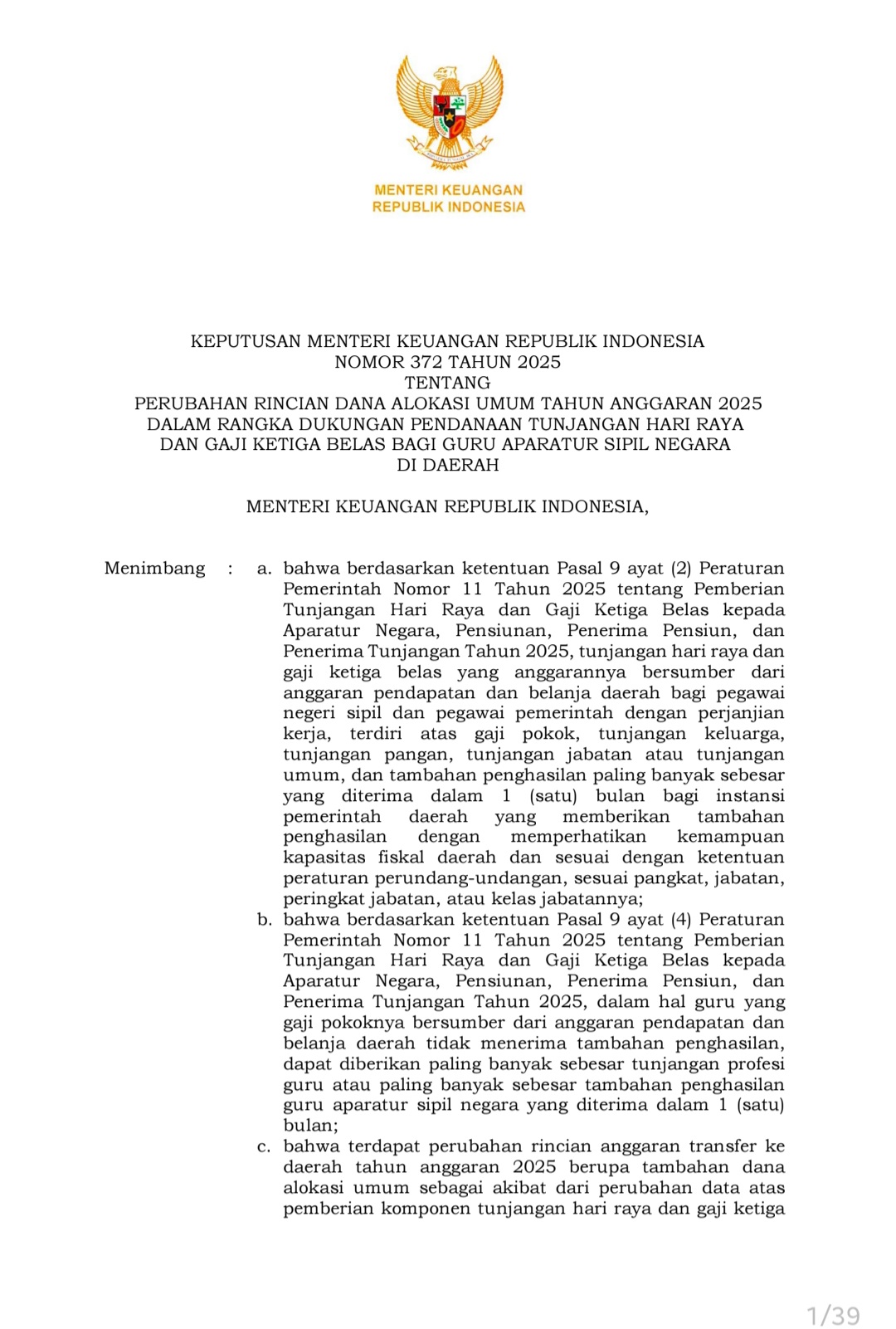 Kepala Dinas Pendidikan dan Kebudayaan Provinsi Gorontalo, Rusli Nusi, menjelaskan, penundaan muncul setelah diterbitkannya Keputusan Menteri Keuangan (KMK) Nomor 372 Tahun 2025 tentang Perubahan Rincian Dana Alokasi Umum (DAU) pada Selasa (22/12/2025). Dokumen anggaran baru diterima oleh Pemprov Gorontalo pada Rabu (23/12/2025).