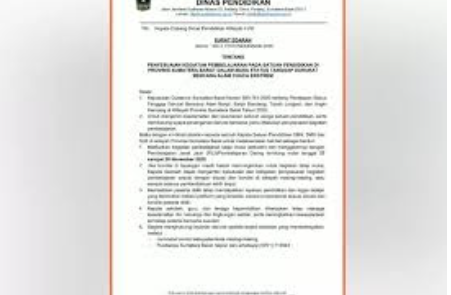 Sumbar, lokaljawa.com — Pemerintah Provinsi Sumatra Barat (Pemprov Sumbar) resmi mengalihkan kegiatan belajar tatap muka menjadi Pembelajaran Jarak Jauh (PJJ) mulai 27 hingga 29 November 2025. Kebijakan ini tertuang dalam Surat Edaran tentang Penyesuaian Kegiatan Pembelajaran selama Status Tanggap Darurat Bencana Alam akibat cuaca ekstrem.