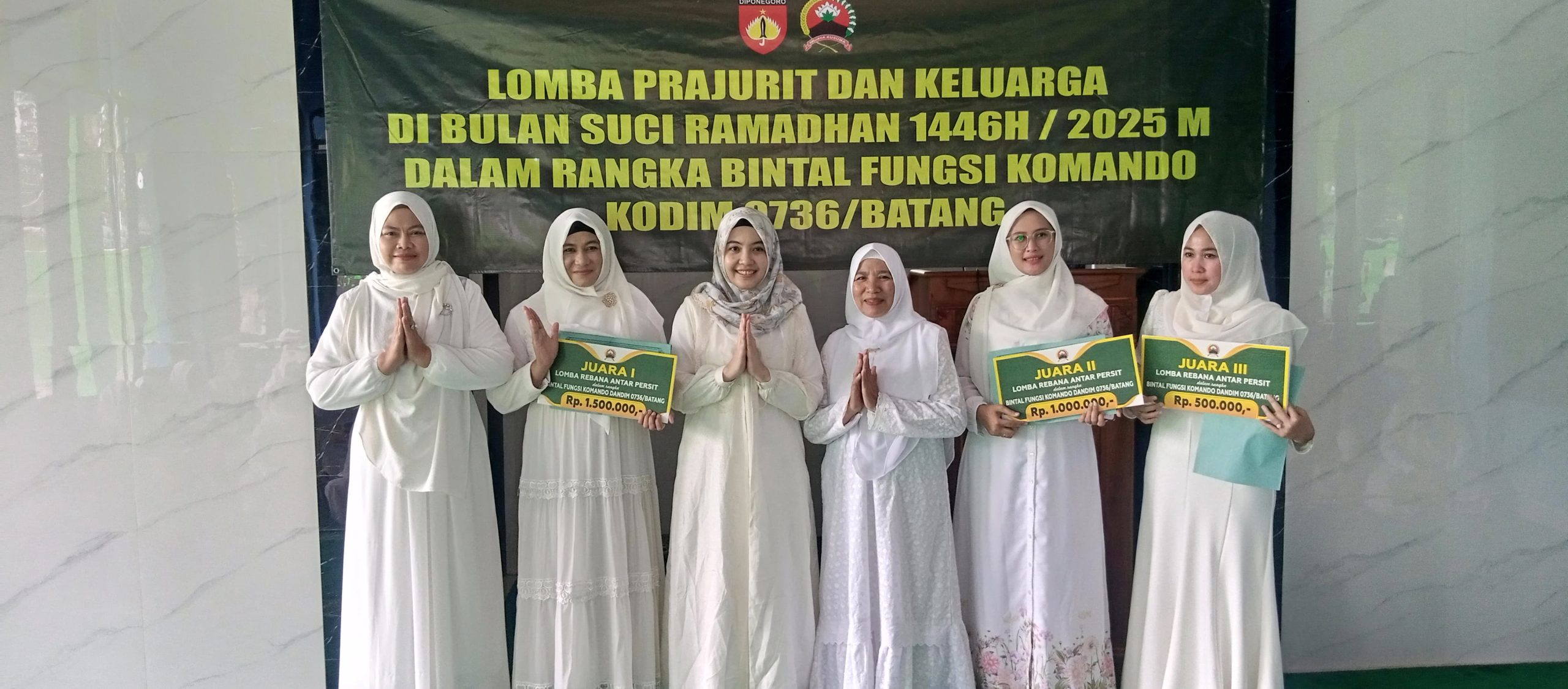 Juara 1 Lomba ini diraih oleh Persit dari ranting Koramil 06/Tersono, juara 2 Persit dari ranting Koramil 08/Wonotunggal dan juara 3 diraih oleh Persit dari Cabang Kodim 0736/Batang. (Saeful Husna kabiro Batang)
