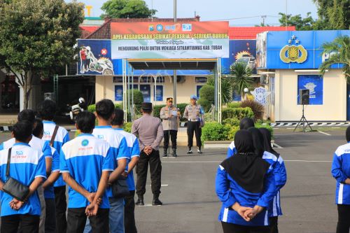 Kegiatan yang berlangsung di halaman Polres Tuban itu dipimpin langsung oleh Kapolres Tuban AKBP William Cornelis Tanasale, S.I.K., dan diikuti oleh puluhan perwakilan dari Federasi Serikat Pekerja Metal Indonesia (FSPMI), Serikat Pekerja Nasional (SPN), serta Serikat Pekerja Seluruh Indonesia (SPSI).