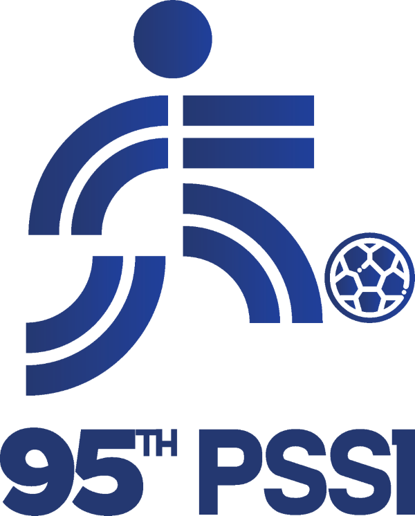 Logo khusus HUT ke-95 PSSI hadir dengan pendekatan desain yang modern dan minimalis. Angka “9” dan “5” tidak ditampilkan secara konvensional, melainkan dibentuk melalui lengkungan dinamis yang menyiratkan gerak dan perkembangan. Elemen lingkaran di atas angka 9 menyerupai bola sekaligus kepala manusia, yang mengilustrasikan semangat dan jiwa olahraga yang hidup dalam tubuh sepak bola Indonesia.