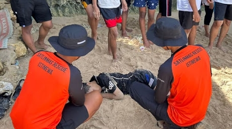 Mengetahui kondisi tersebut, salah satu rekan korban segera melaporkan kejadian ke petugas jaga. Tim Satlinmas bersama SAR pantai segera menuju lokasi dan mengevakuasi korban ke area aman di tepi pantai.