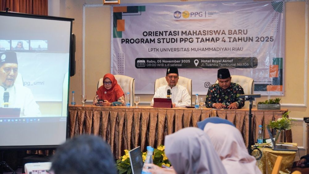 Pekanbaru, Lokaljawa — Universitas Muhammadiyah Riau (UMRI) menyelenggarakan Orientasi Mahasiswa Baru Program Pendidikan Profesi Guru (PPG) Tahap 4 di Hotel Royal Asnof Pekanbaru, pada Rabu (5/11/2025).