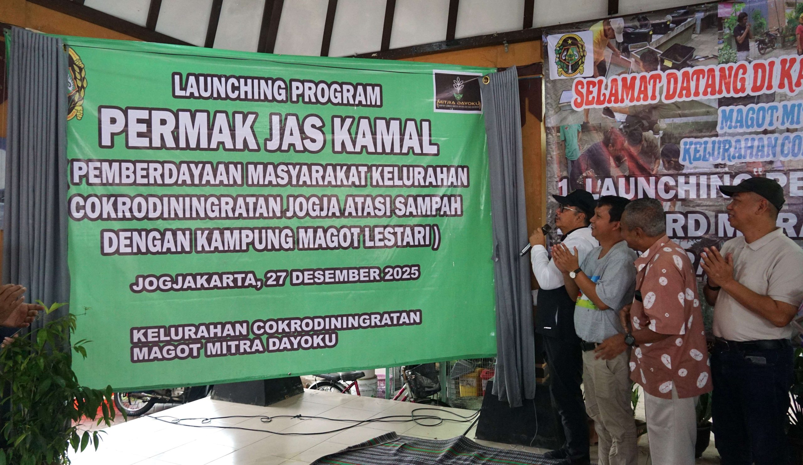 Yogyakarta, lokaljawa.com – Warga Kampung Cokrodiningratan, Kemantren Jetis, Kota Yogyakarta, berhasil mengolah sampah organik menjadi sumber manfaat ekonomi melalui program Kampung Maggot Lestari atau Permak Jas Kamal. Program pemberdayaan masyarakat ini resmi diluncurkan bersama Wali Kota Yogyakarta Hasto Wardoyo dan jajaran Pemerintah Kota Yogyakarta pada Sabtu (27/12/2025).